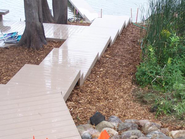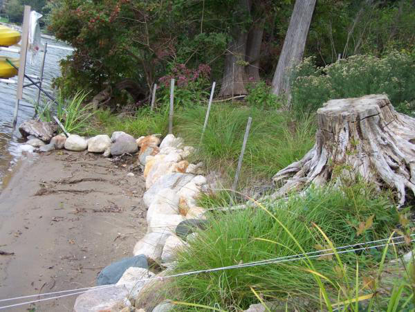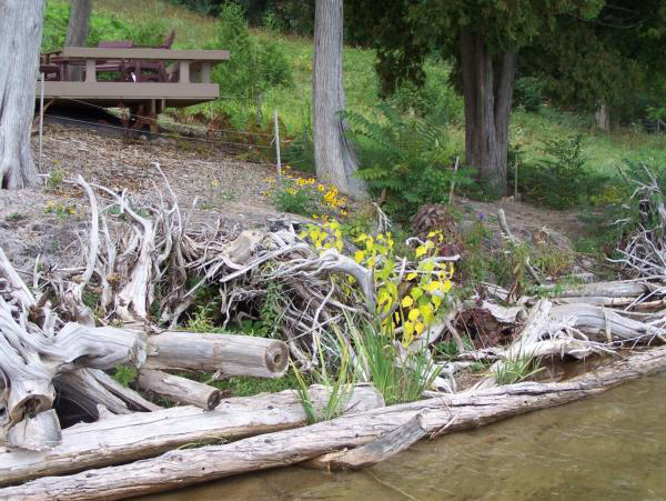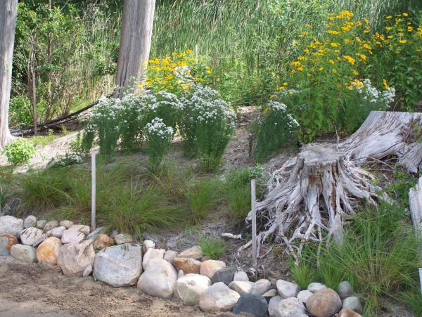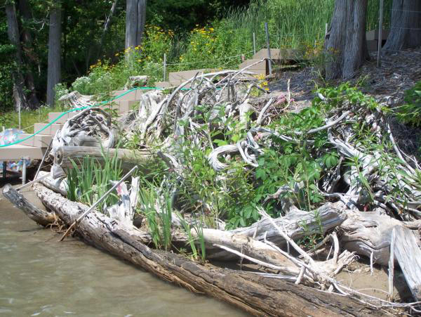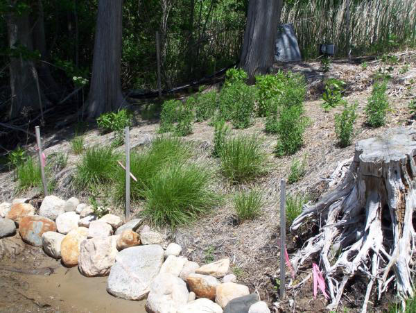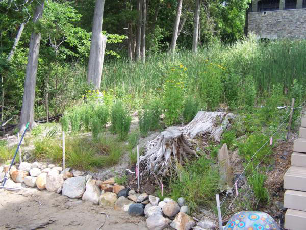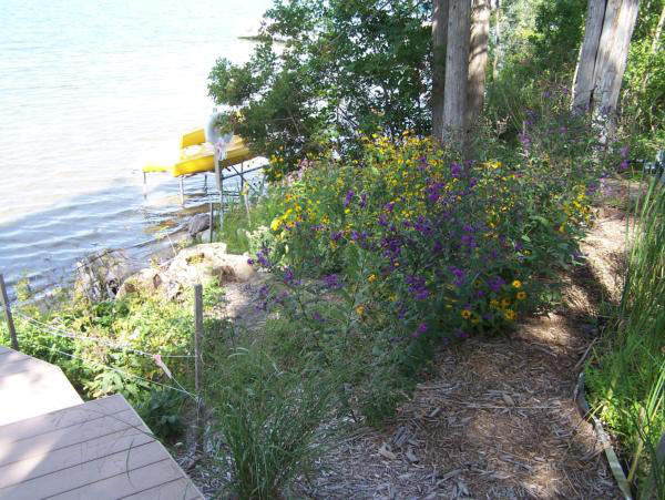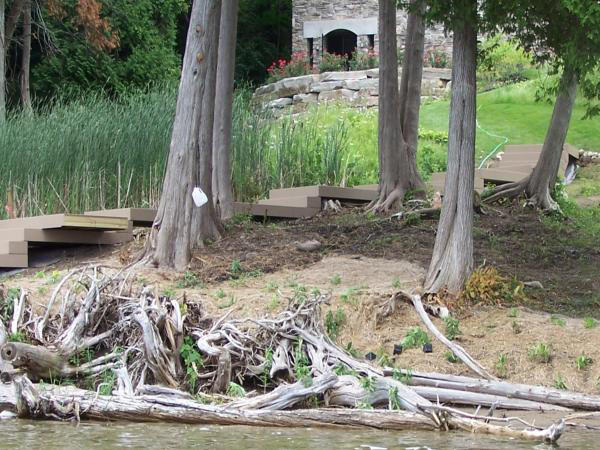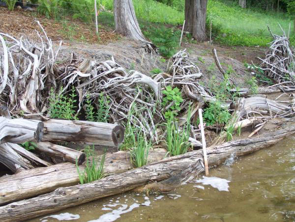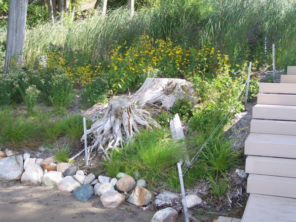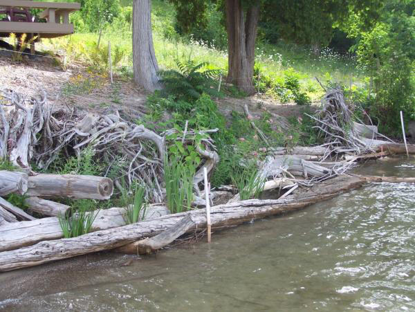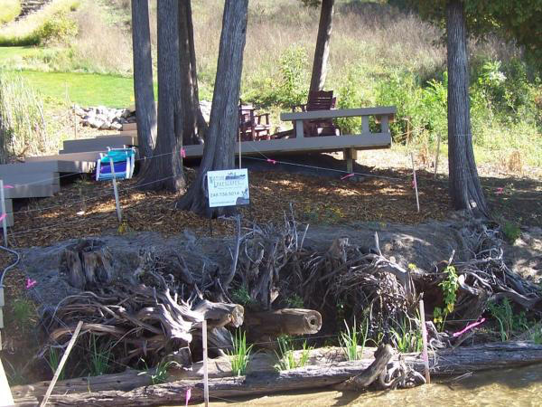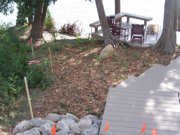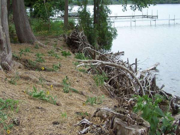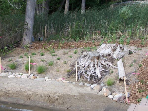 Deer Lake Riparian Shoreline ProjectTwo major objectives on this project: •Creating lake access•Lakescaping shorelineThe resultant riparian shoreline buffer protected against erosion and enhanced access and use of lake.Existing drift wood was left in place and native plants were installed along water's edge and upland slopes.