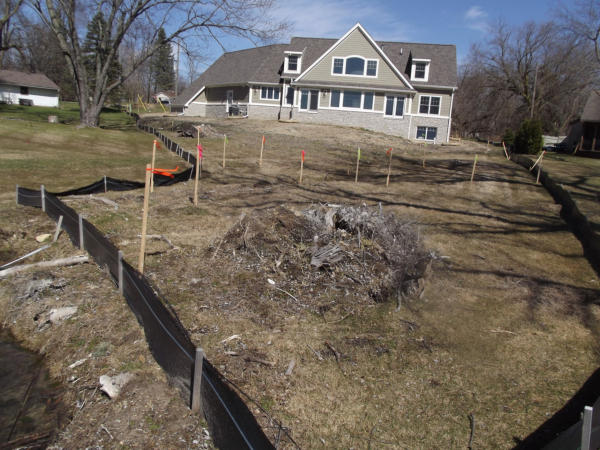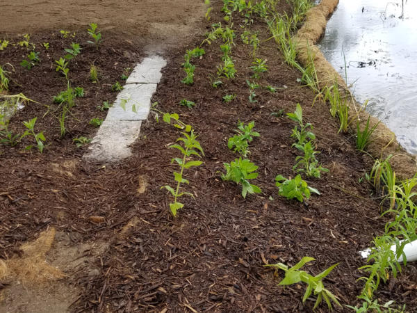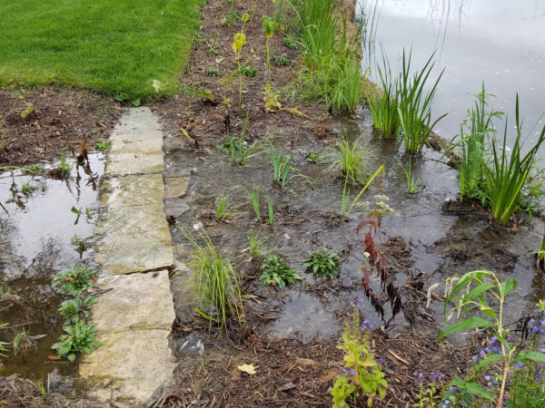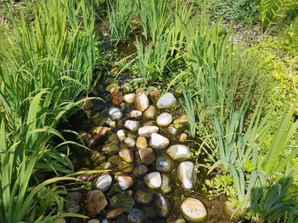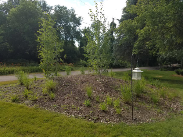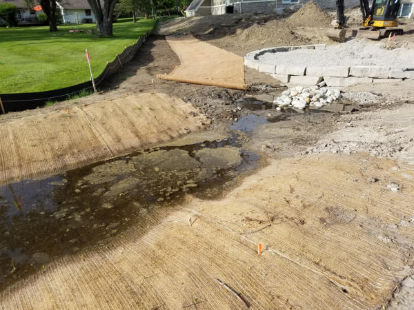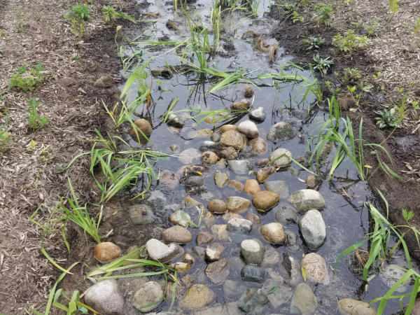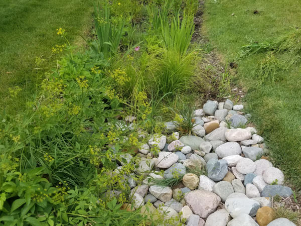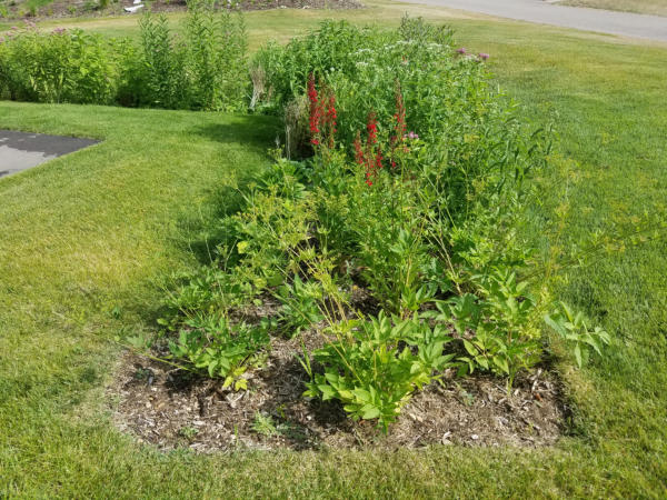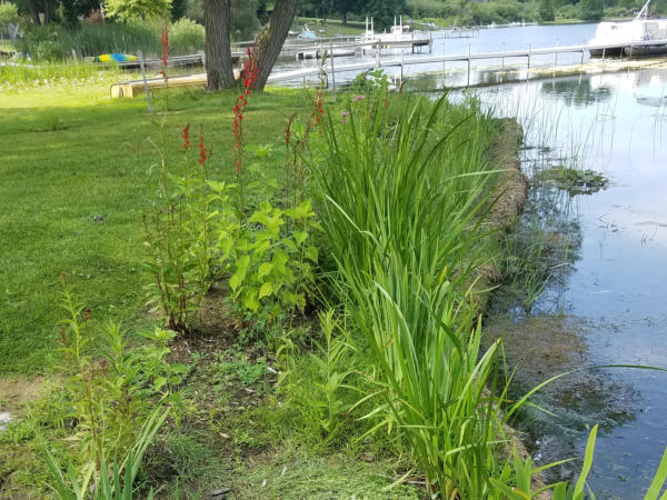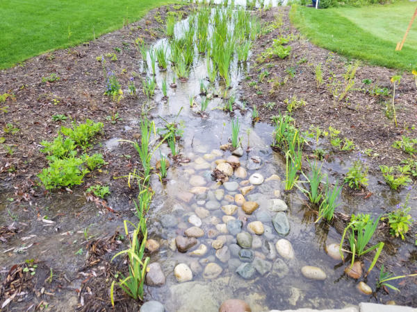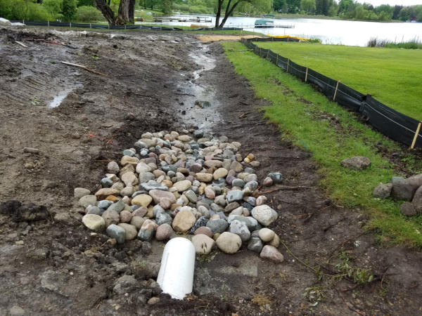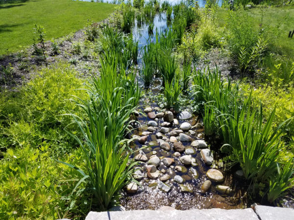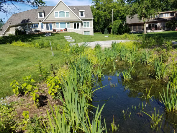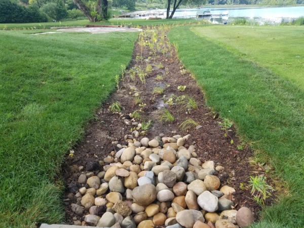 Parke Lake Clarkston, MI 2018This was a very unique project and opportunity to address some extraordinary situations. New home was built on a very high water table lot. Artesian wells were flowing constantly from below home and had to be captured and flowed through a bio-swale and over a weir and into the lake.In addition 4 large rain gardens were built to manage all the eave troughs rainfall and general slope of the property. We worked in conjunction with the builder, architect and excavator. Project planning started in Fall of 2016 and landscaping started in late May and finished up in Sept. 2017.Initial pictures show before and when installation was completed. Pictures from 2018 have been added and you can really see the growth after only one year.